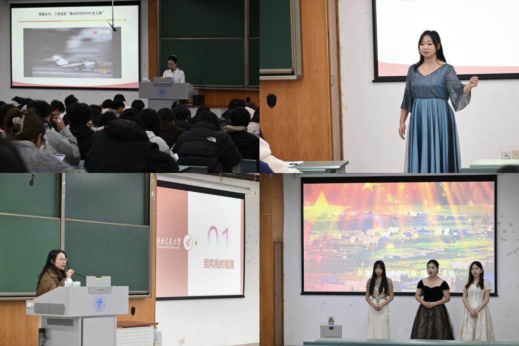 最后,《我和我的祖国》讲演团同学带领大家了解了近现代英雄的故事:“两弹元勋”郭永怀,在飞机失事的瞬间,用身体护住核试验数据,将生命永远定格在为国奉献的征途上;“大漠赤子”林俊德,在生命最后一刻仍伏案工作,用微弱的气息梳理完国防科研资料。这些“把论文写在祖国大地上”的身影,将个体生命熔铸成了民族复兴的基因链。
