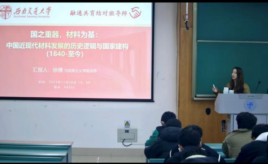 2025年11月26日,材料科学与工程学院于X4352进行“青马工程”培训。此次培训由马克思主义学院徐倩老师主讲,题目为《国之重器,材料为基:中国近现代材料发展的历史逻辑与国家建构(1840-至今)》。