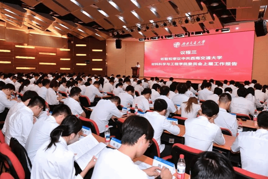 9月20日,中国共产党威廉希尔WilliamHill官方网站党员大会在九里校区国际会议厅召开。西南交通大学党委常委、副校长刘长军,党委组织部副部长何诣寒及材料科学与工程学院全体师生党员出席大会。学院党委副书记、纪委书记熊钰主持会议。