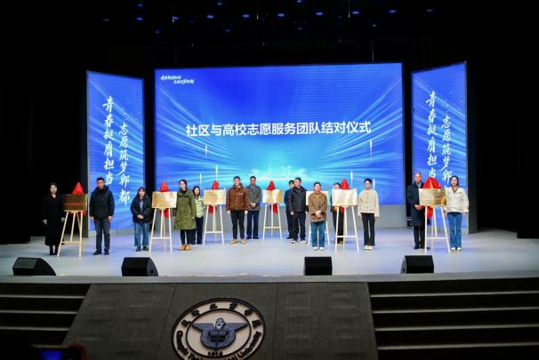 结对仪式上,双方代表共同为“青年志愿服务实践基地”揭牌。该基地的建立,旨在整合校地资源、搭建实践平台,为我院青年学子提供更丰富的志愿服务新场景与实践渠道,助力其提升服务能力与社会责任感。