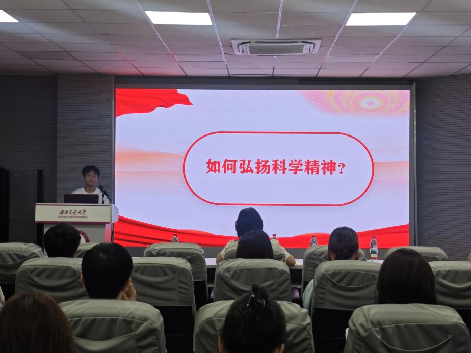 会议第二项,聚焦科学精神与师德师风建设。结合国家“全国科普月”的相关部署与新修订的《科学技术普及法》,与会同志深入讨论了研究生群体在弘扬科学精神、履行科普责任中的使命与担当。通过集中学习2025年“全国最美教师”的先进事迹,大家深刻感悟了“理想信念之美、道德情操之美、扎实学识之美、仁爱奉献之美”的精神内核。张子岳同志结合自身科研实践,就如何在科研工作中坚守科学道德、传播科学知识分享了体会,倡议将知识服务于人民作为学术研究的价值归宿。