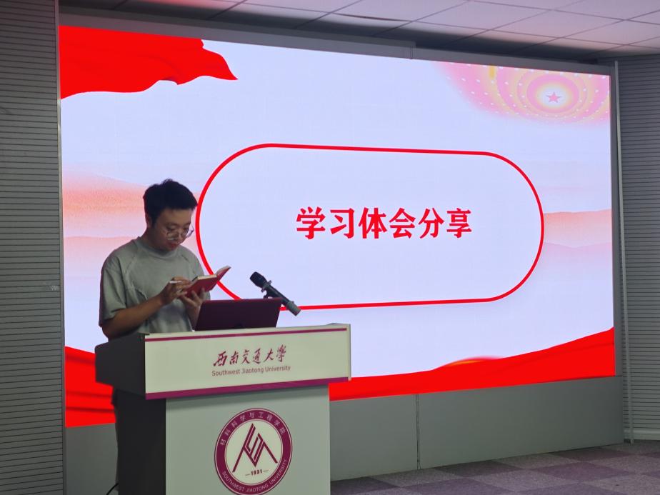 会议第四项,结合新学期学习科研计划进行交流研讨。庄景豪同志以“传承—创新—自律—践行”为逻辑主线,分享了本次学习的心得体会。他提出,要将历史传承的精神力量转化为科技创新的不懈追求,用严格的自律保障科研工作的健康发展,最终将所学所悟践行于服务国家战略需求的实际行动中。