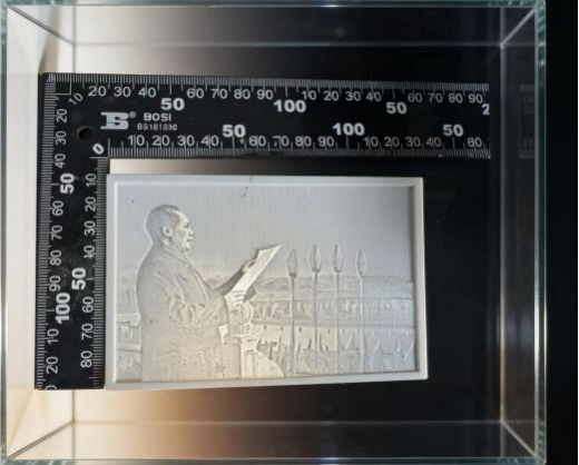 作品选取象征国家新生与强盛的历史性场景,通过三维建模与分层打印技术,将宏大画面转化为可触可感的微缩景观。打印过程中对层厚精度、支撑结构及后处理的精细控制,直接体现了科研中“精益求精”的追求。