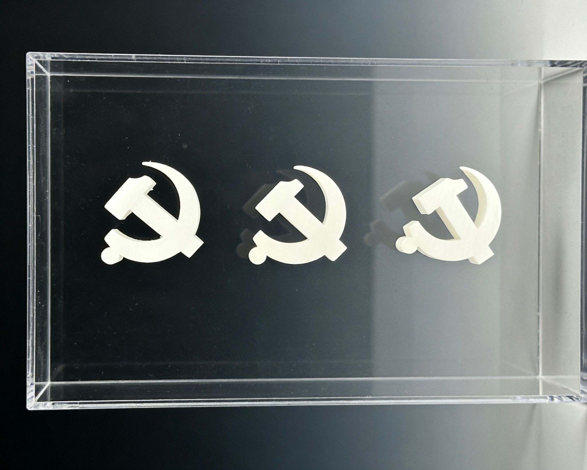 创作现场·难题攻克:以特写镜头聚焦作品诞生过程。包括打印过程中党员们实时监控设备状态、针对“标语笔画粘连”、“浮雕细节模糊”等技术问题现场调试参数、以及后期小心翼翼进行支撑去除与表面处理的场景,生动诠释了“精益求精”的工匠精神。